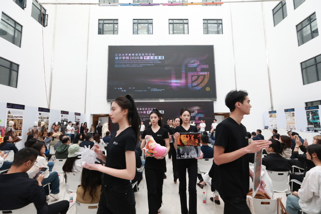 据悉,本次江汉大学美育浸润活动暨设计学院2026届毕业成果展以“循”为主题,秉持“循道于昔,复古经纬;循理于今,织永续之环;嬗变至未来,织造共生之境”理念,融合非遗传承与数字技术,汇聚本科及研究生毕业作品精品400余件。展览在师生服务中心中庭、汉正街云裳链—武汉时尚跨贸产业园(汉正街云尚T1写字楼37层)等校内外场馆同步开展,展期持续至5月20日,欢迎广大师生、市民朋友前往观展。